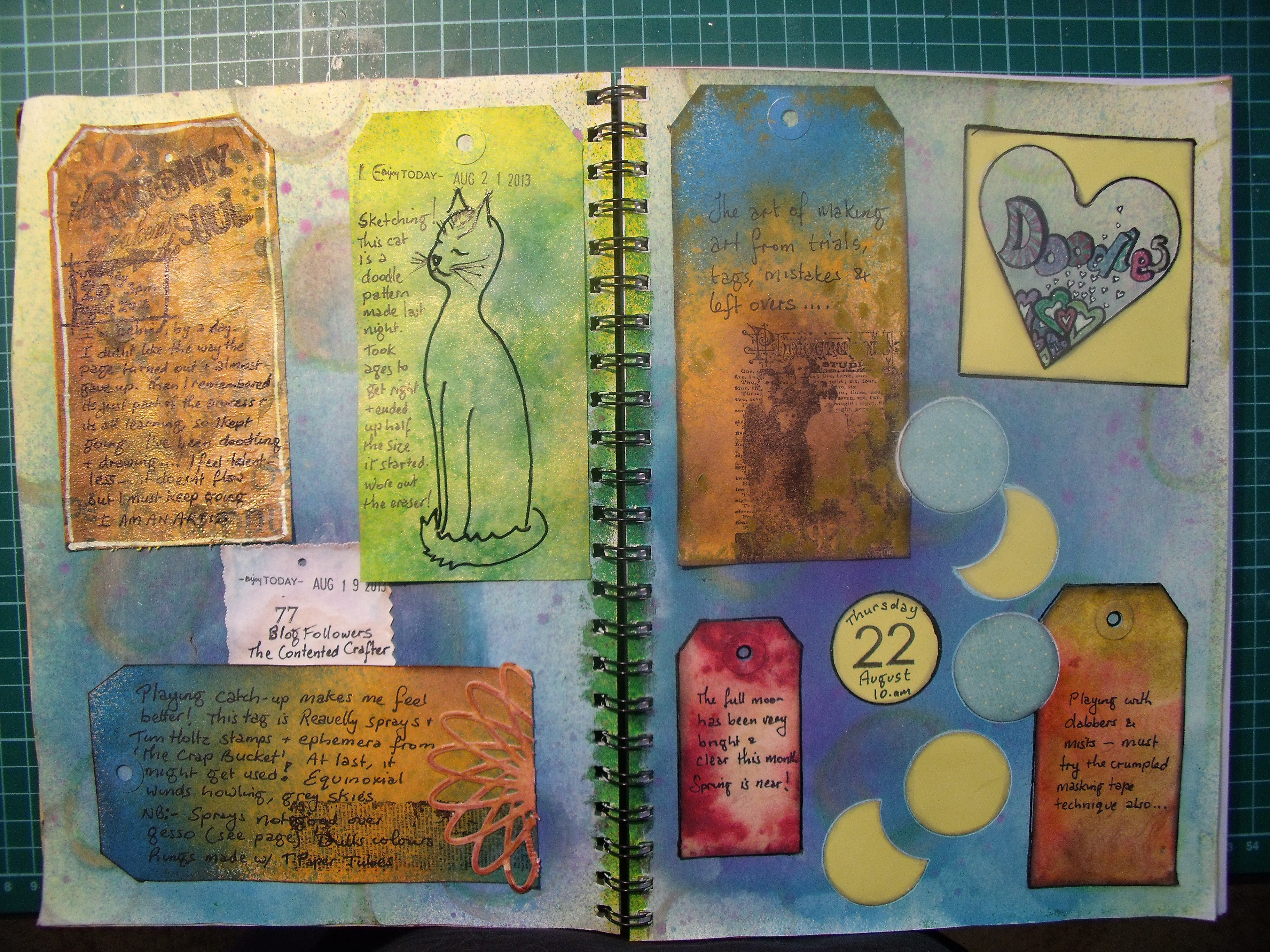 I’ve managed to completely discombobulate myself with all my new found arty-farty techniques, new equipment and re-found mediums – shall I use the water paints or the fluid acrylics or the water soluble pastels or the water soluble crayons? Perhaps I should just use the inks and sprays I am used to – but then why are all these pretty colours sitting on my desk smiling at me hopefully?