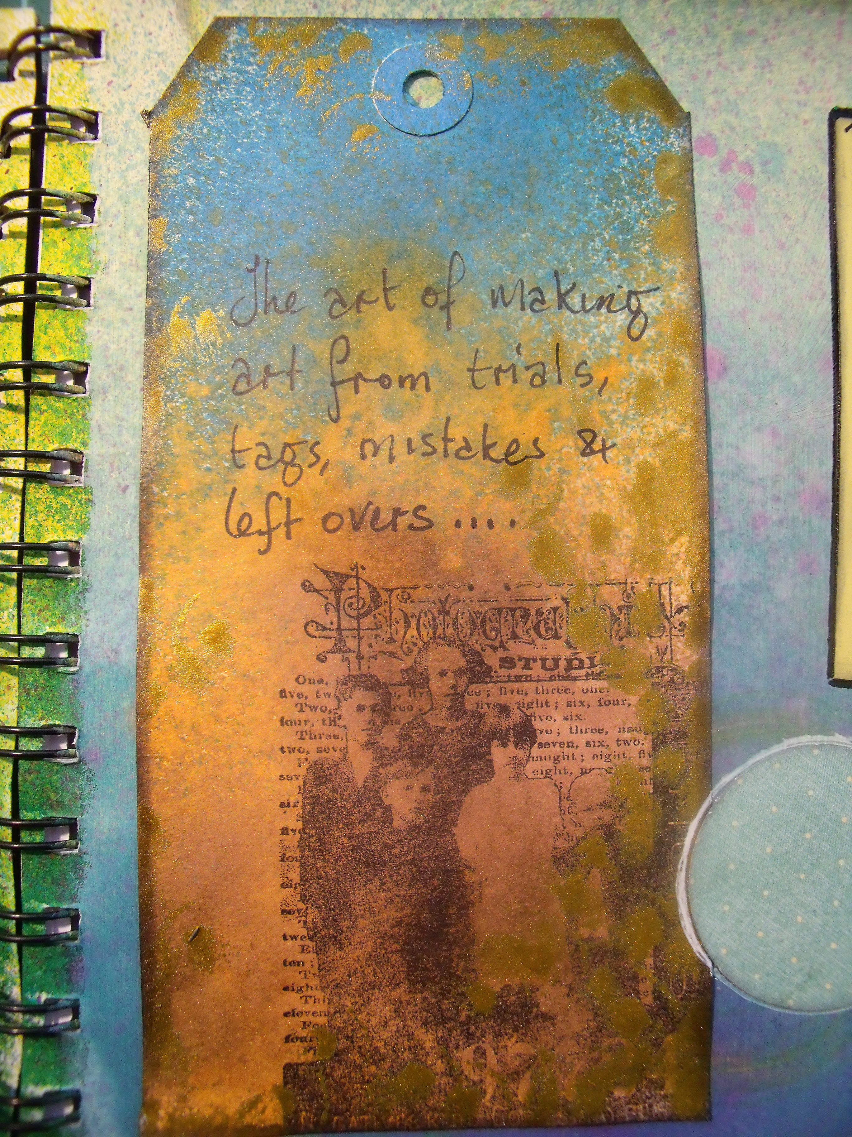 All the wording comes from Valerie – I loved it so much I just went with it. You may notice the curvy edged paper – I have made a small 8 page journal with shaped edges and a wrap around cover – also courtesy Valerie. When the whole thing is finished I’ll put it up for your admiration and delight 🙂