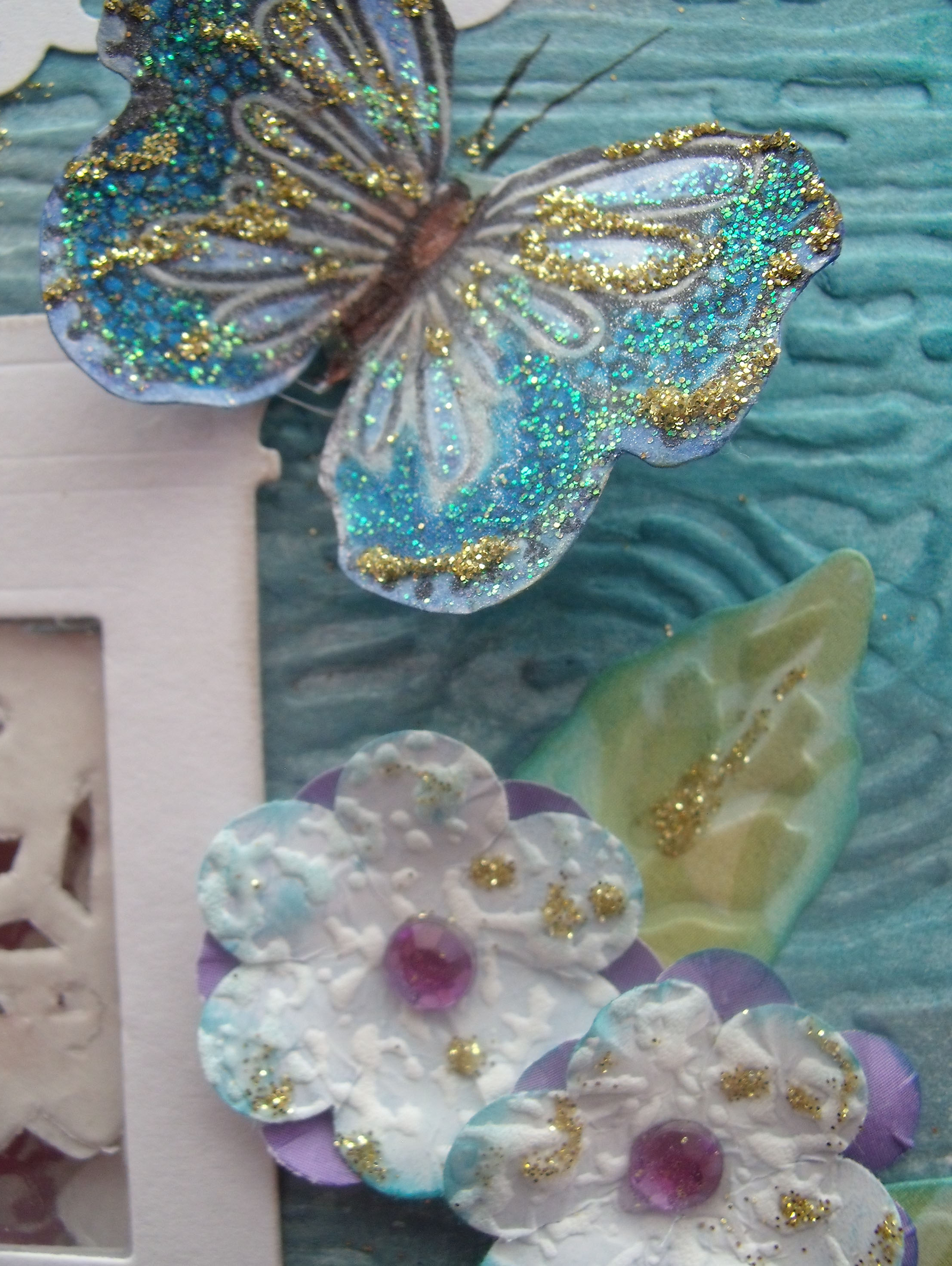 The fabric flowers are made from organza and curtain netting – great fun to make as it involves a lighted candle and charring melting ….. 🙂