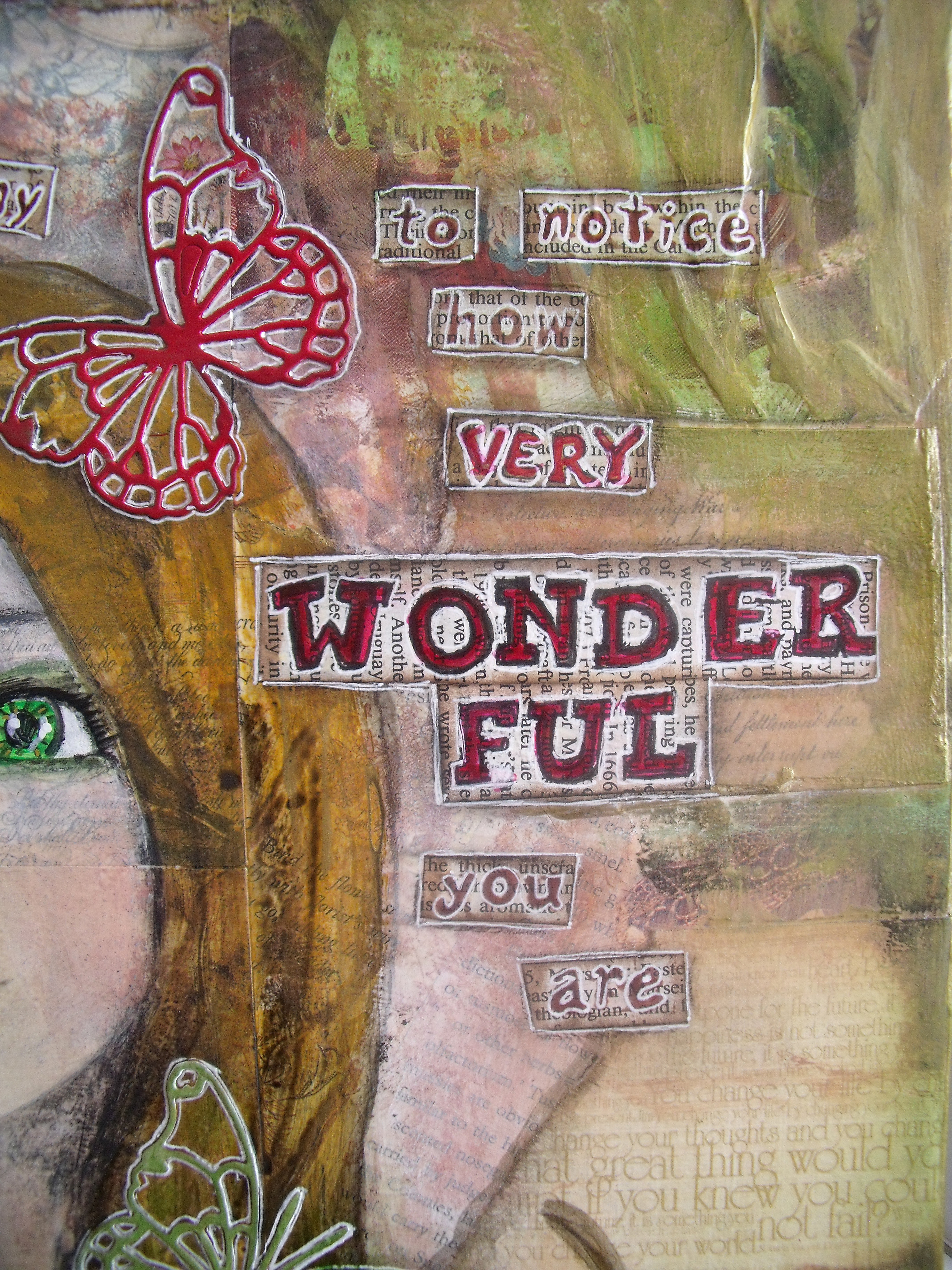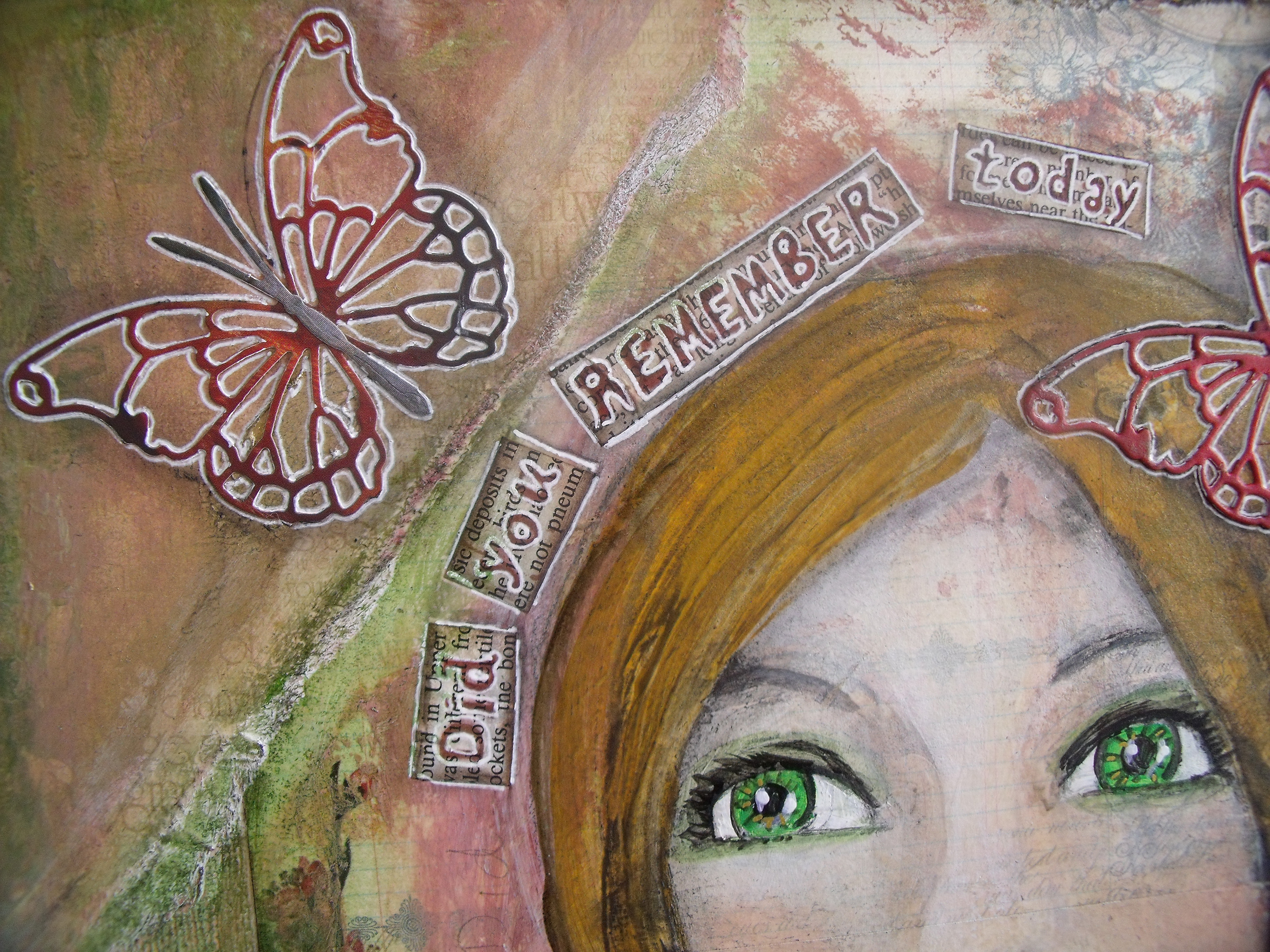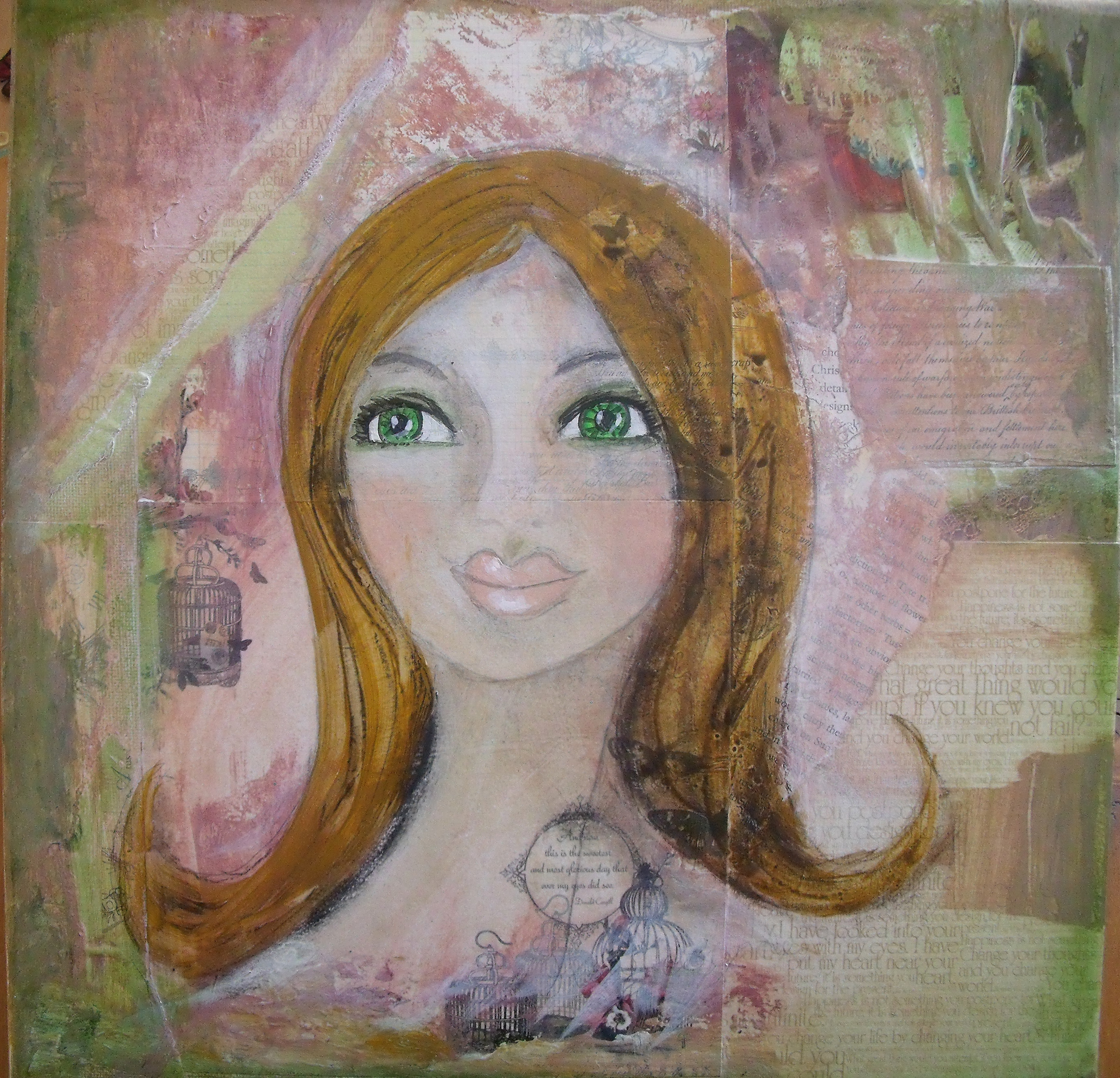 So here is the latest whimsy girl. She is mixed media on a rigid canvas board measuring 35 x 46 cm. You can double click for an enlarged view.