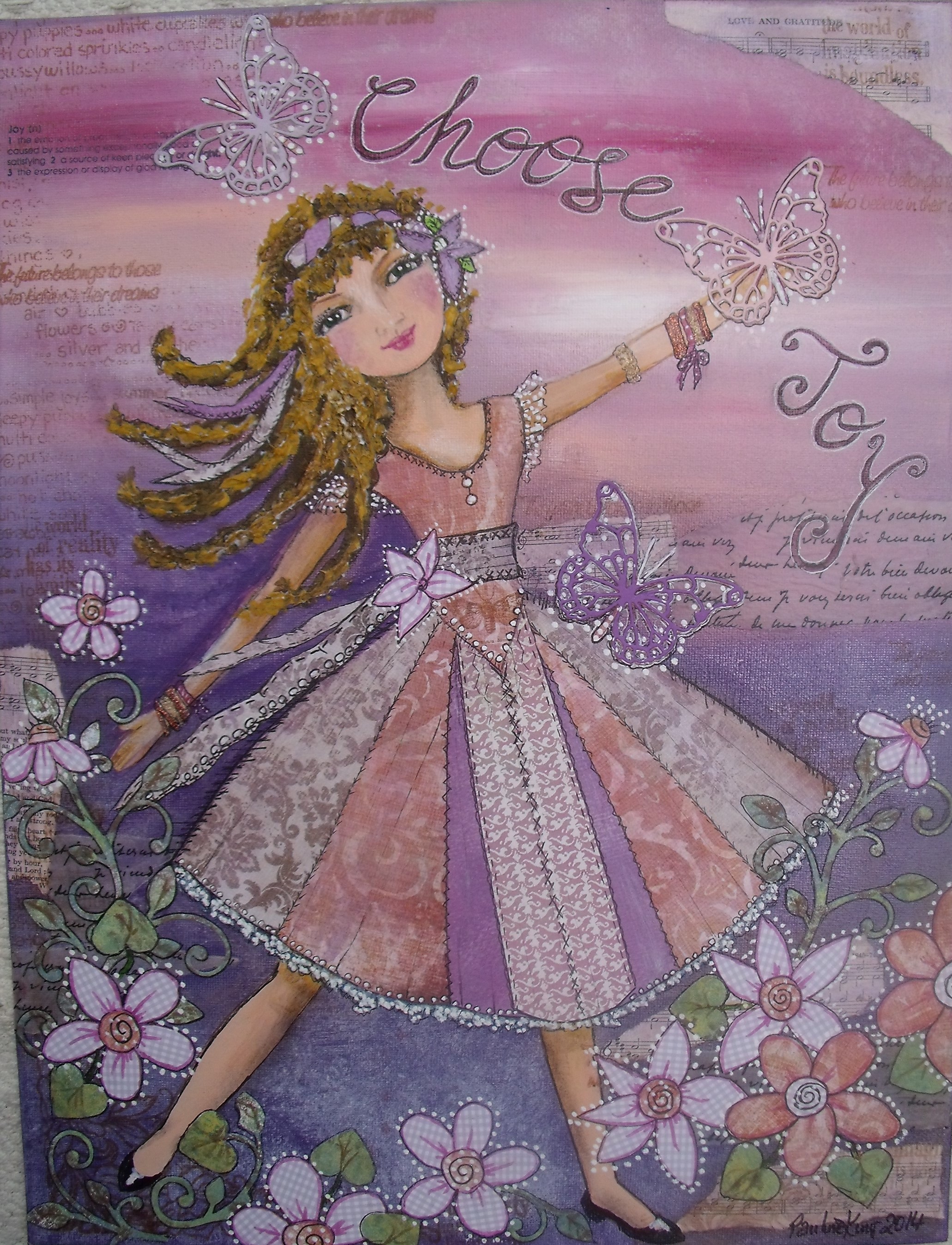 I came home and took some photographs, I propped her up in the corner and there she sits dancing happily urging me to ‘Choose Joy’.