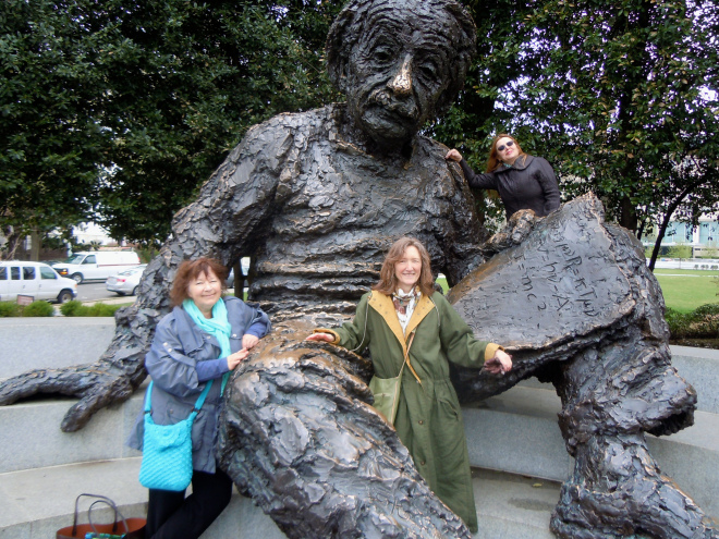 On their return to DC, they wanted to see the Cherry Blossoms down at the Tidal Basin, so I met them at their hotel in Dupont Circle and proceeded to walk their legs off. First we visited Einstein at the National Academy of Sciences. Since I work nearby, Einstein is often a lunch companion in good weather.