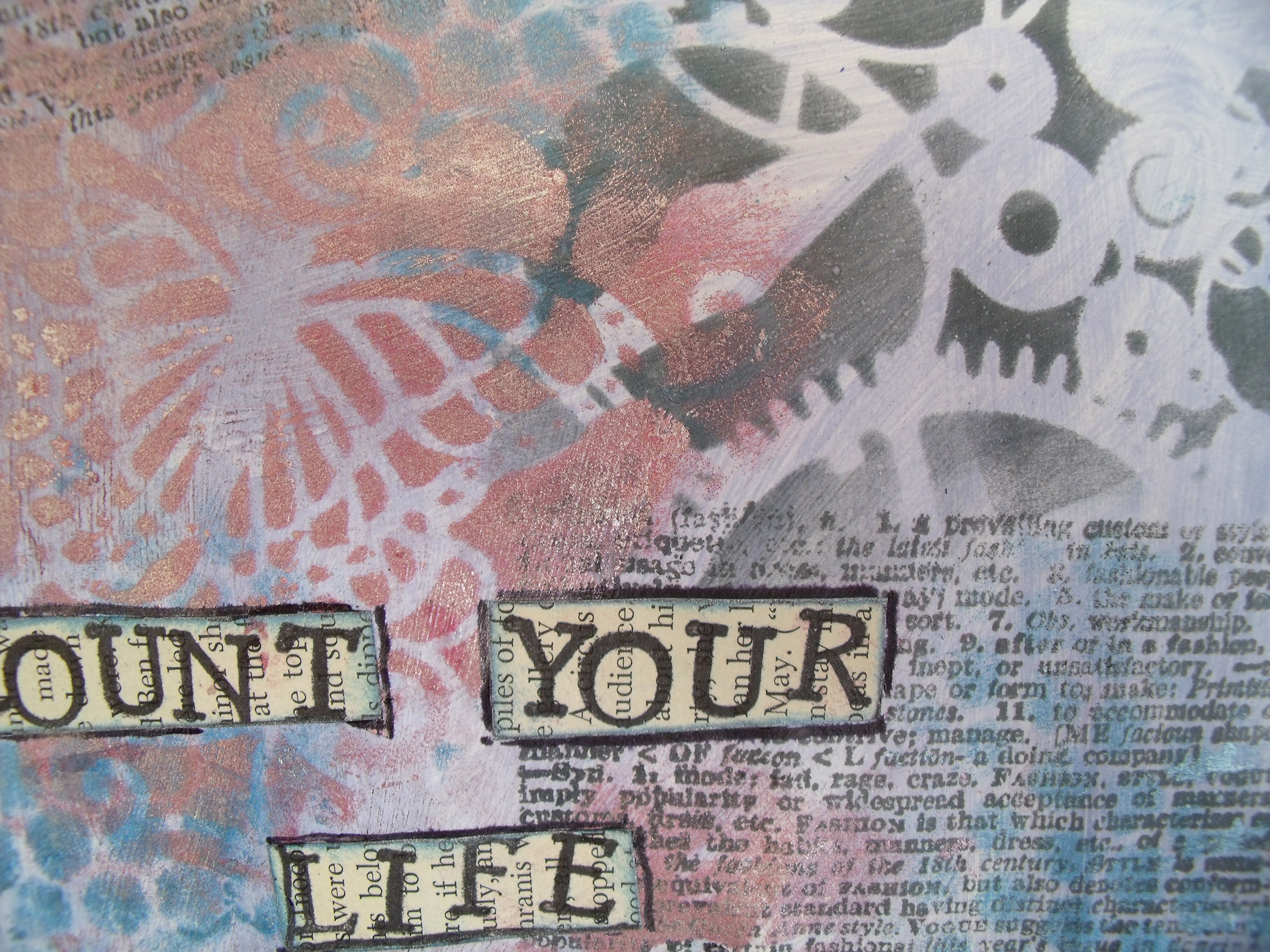 I like that you can still see the newsprint showing through – but the photo is not true to the red I used – think blood red and you’ll be closer to the truth of it.