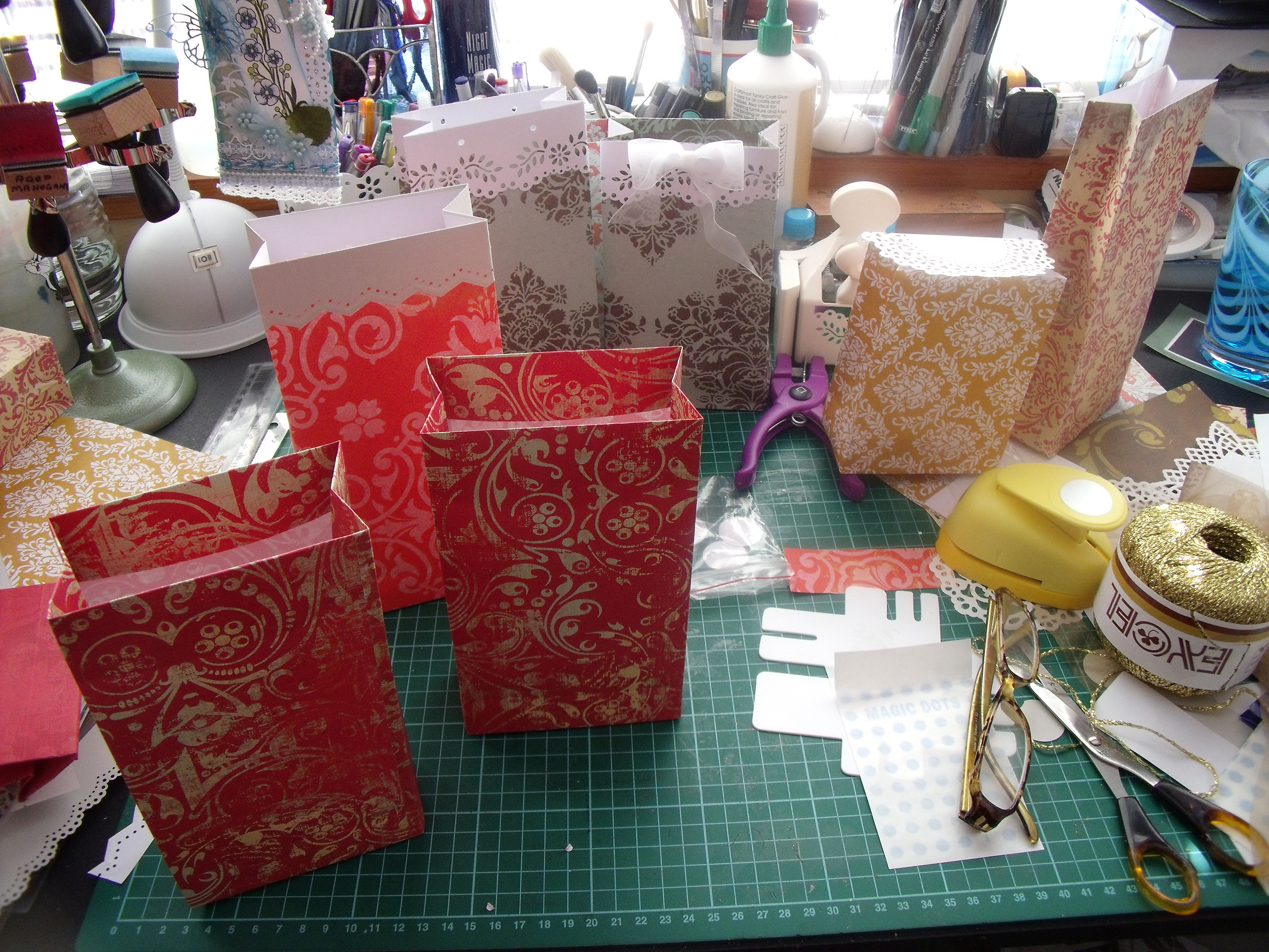 When my lap top started playing up I retaliated by leaving it alone to sulk and put all the extra time I found I suddenly had into solving the mystery of making gift bags.