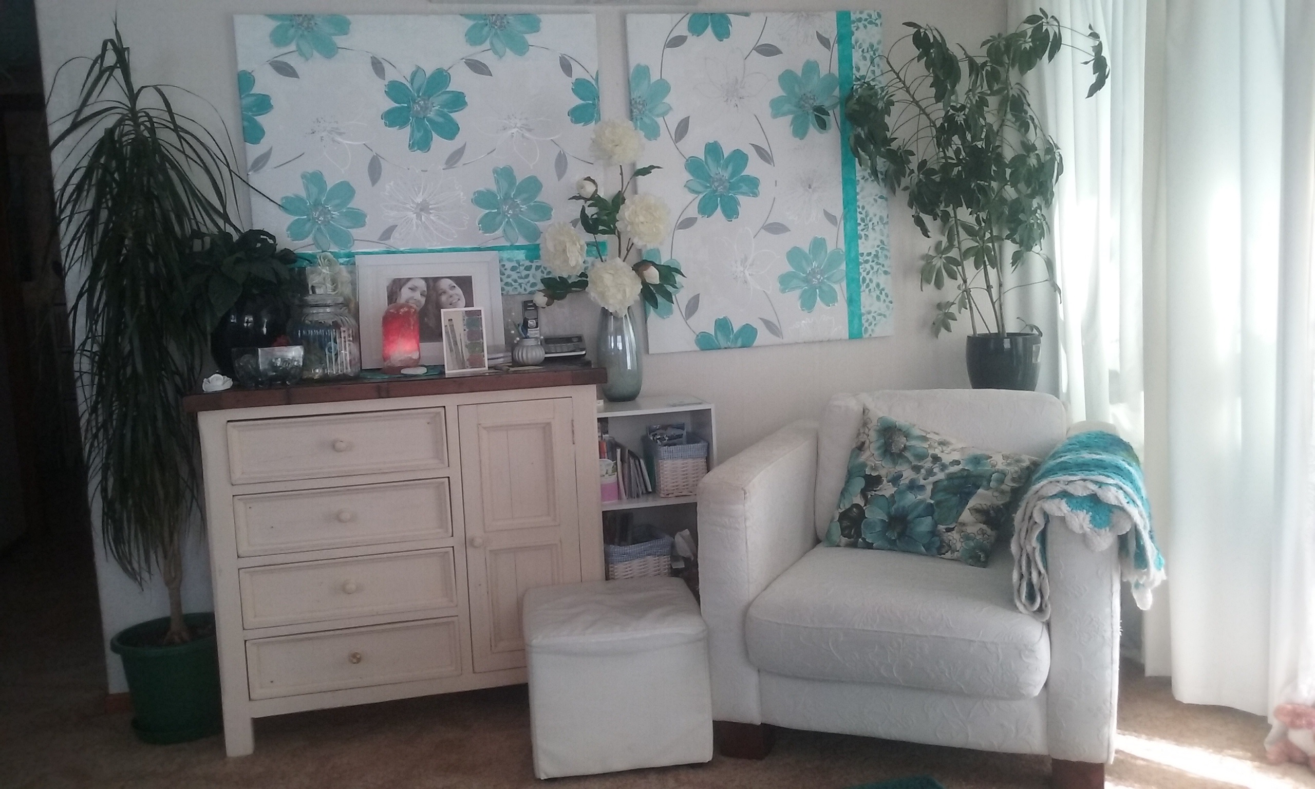 YD did the couch covering job while I was involved as colour and pattern consultant, chief cushion maker and this arty creation