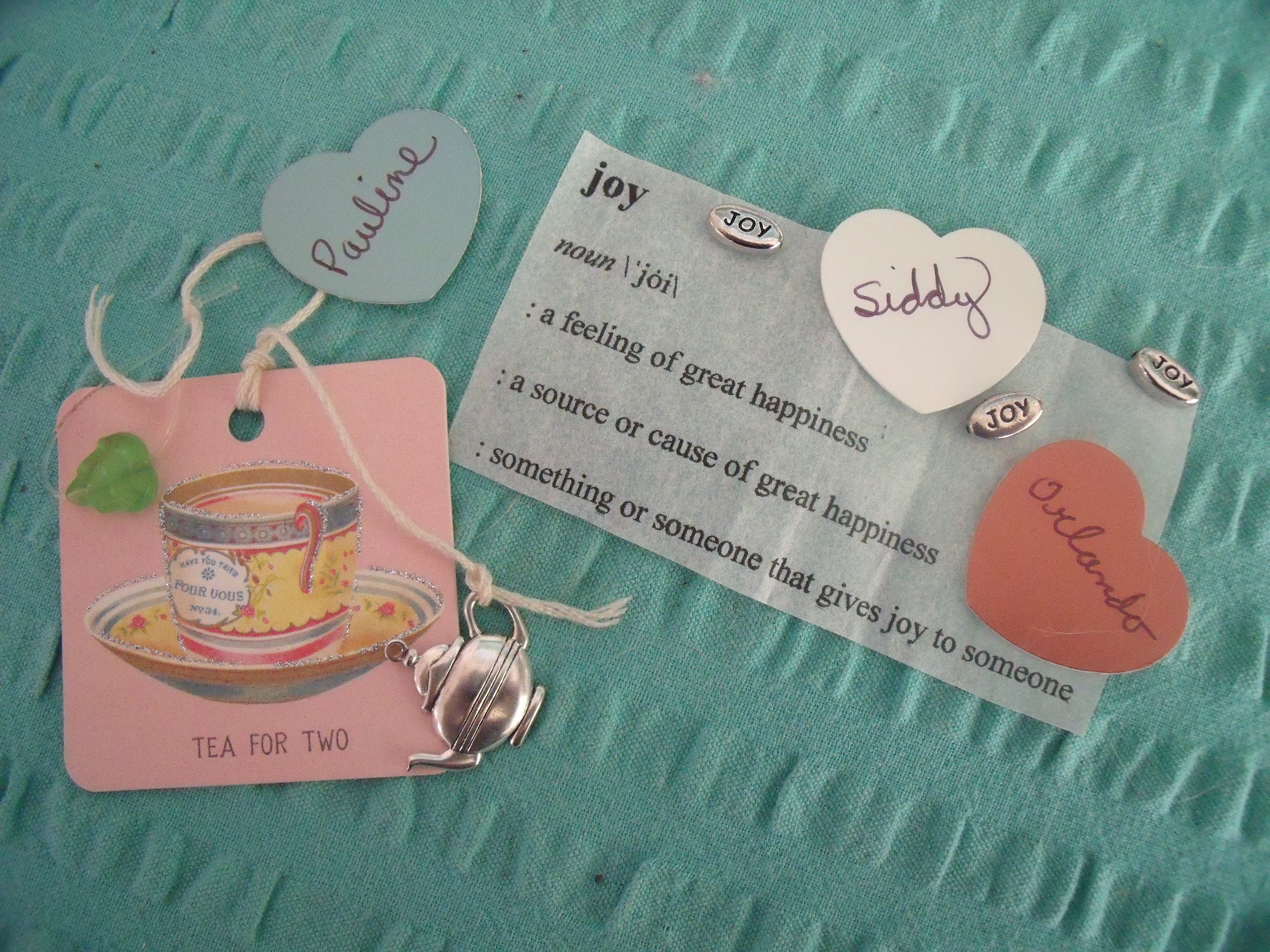 Thank you Alys for the beautiful and thoughtful and care filled hearts and beads and pictures with accompanying notes. I’m so sorry Siddy ate two of the papers, though I don’t think he is – he had a wonderful time with them. I managed to save the ‘Joy’ piece and it is laminated and hanging.